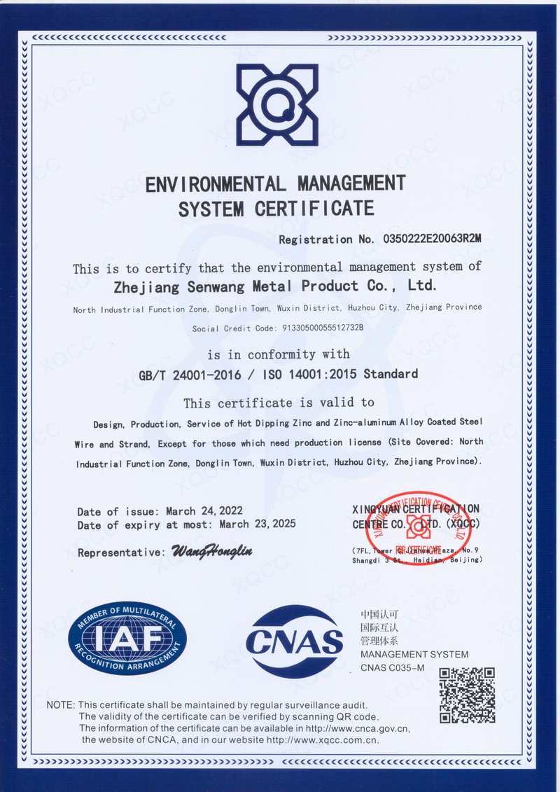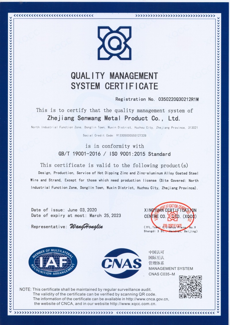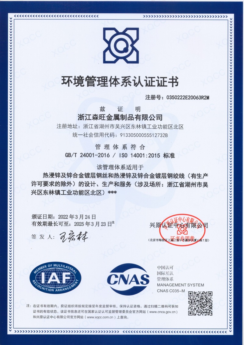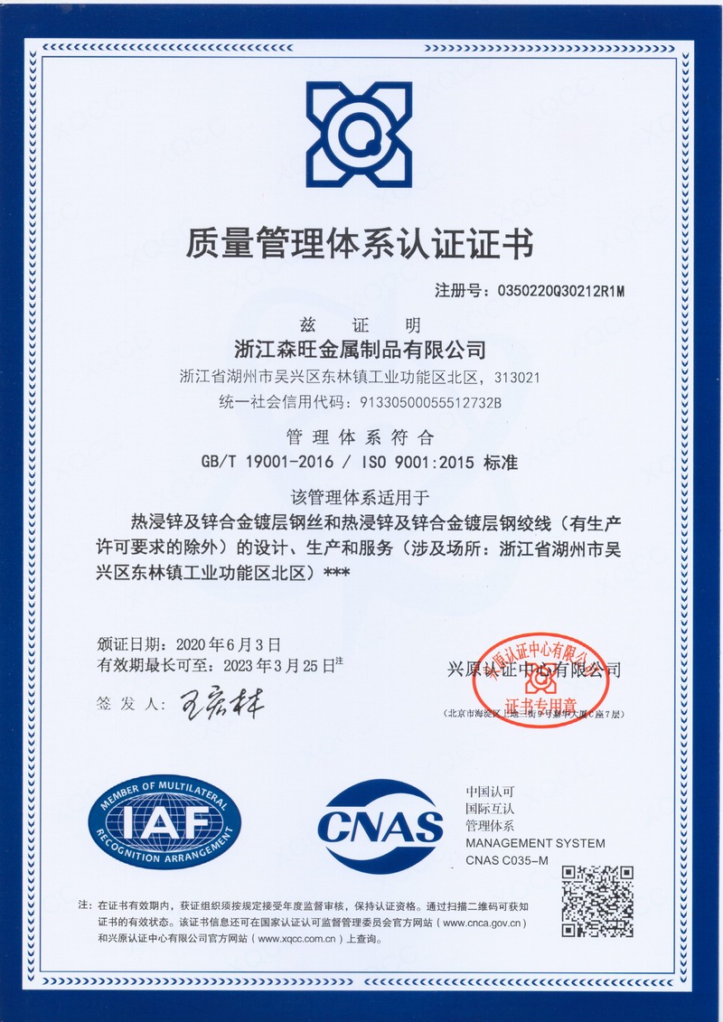 浙江森旺金屬制品有限公司成立于2012年,坐落湖州市吳興區(qū)東林鎮(zhèn)工業(yè)功能區(qū)。公司專(zhuān)業(yè)從事各類(lèi)鍍鋅鋼絲、鋼絞線(xiàn)等產(chǎn)品的開(kāi)發(fā)及生產(chǎn)。目前產(chǎn)品已廣泛應(yīng)用于各類(lèi)通信光電纜,電力輸送,電氣化鐵路工程,各類(lèi)堤壩防護(hù)及農(nóng)業(yè)溫室等工程領(lǐng)域。公司秉承“追求卓越品質(zhì),創(chuàng)建卓著信譽(yù)”的經(jīng)營(yíng)理念,始終堅(jiān)持專(zhuān)業(yè)化、規(guī)?;慕?jīng)營(yíng)模式。