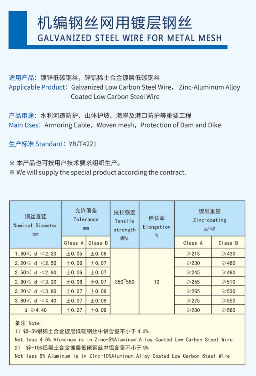 首頁 > 產(chǎn)品中心 > 機(jī)編鋼絲網(wǎng)用鍍層鋼絲地址:湖州市吳興區(qū)東林鎮(zhèn)工業(yè)功能區(qū)北區(qū)